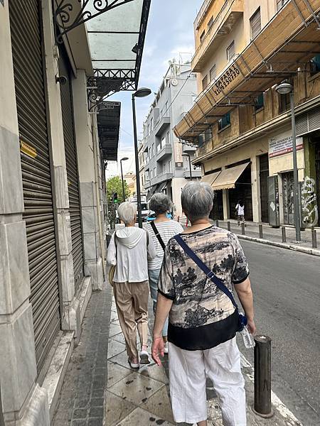 中午吃過休息,我爸媽繼續在旅館休息,5點多我們另外四個去Acropolis Museum,衛城博物館參觀。慢慢走去,這個區很熱鬧