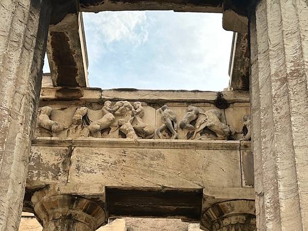 Temple of Hephaestus 赫淮斯托斯神廟是雅典古希臘遺跡中保存最完整的建築古蹟,赫淮斯托斯神廟主要是供奉火神與匠神,其建築風格是古典主義建築神殿的柱子是多立克柱式。