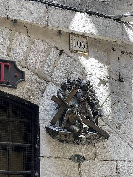 苦路Via Dolorosa 1-4在靠近Lion's gate路那邊,我們直接從第5站開始,一個叫西門的人幫耶穌扛起十字架,