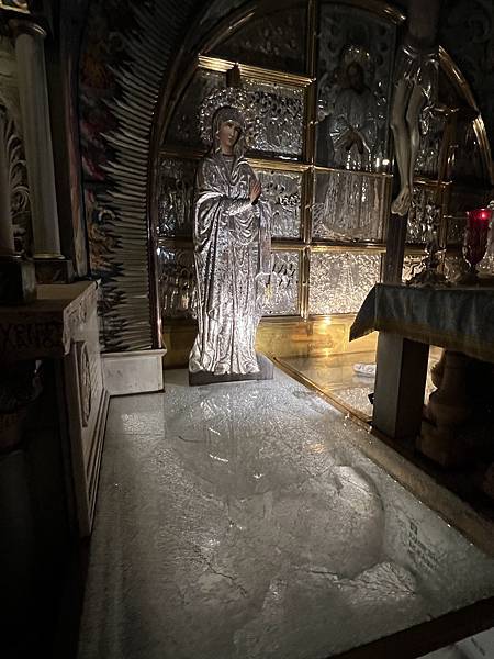 第12站:希臘東正教的十字架小教堂,耶穌十字架就被釘在祭壇中間的石頭上